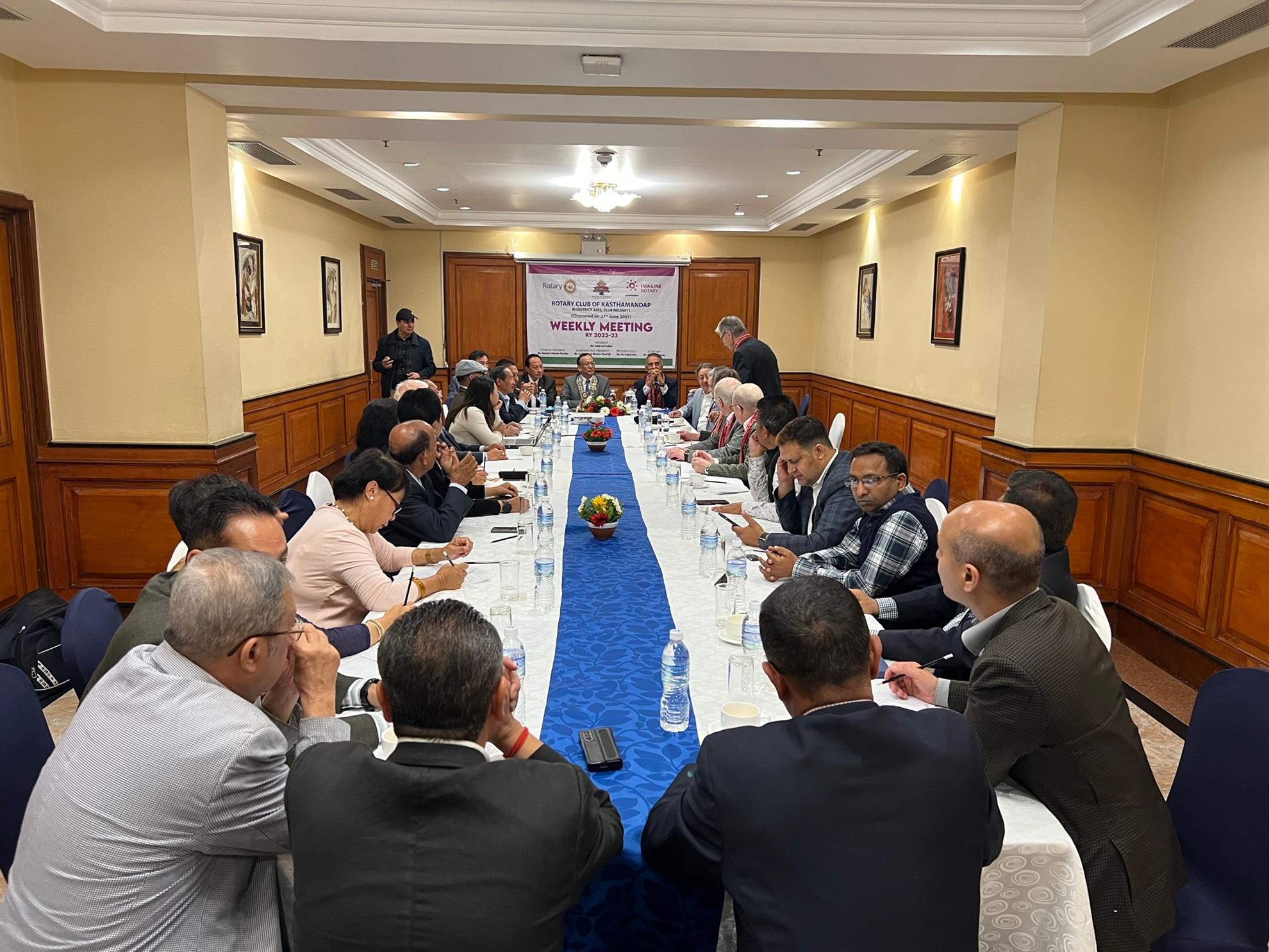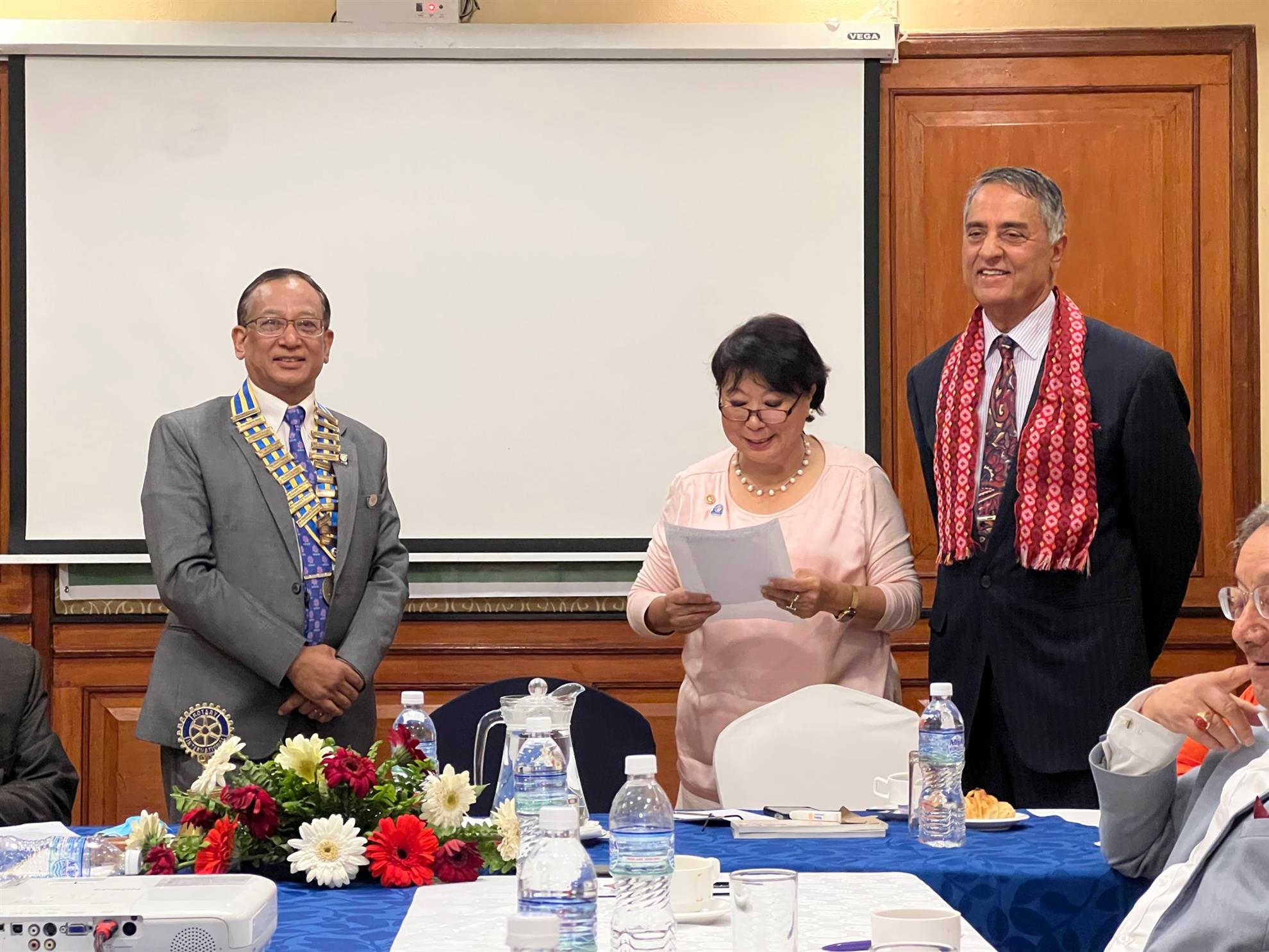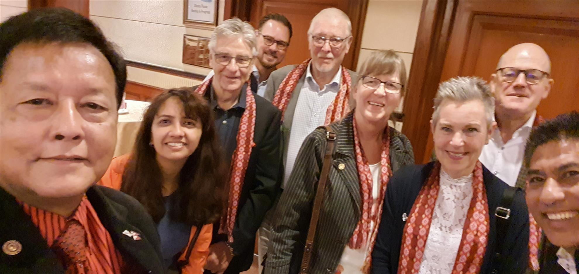 Fredagen den 7 april besökte vi Rotary Club of Kasthamandap i Kathmandu på deras frukostmöte. Vi blev varmt välkomnade och förärades med var sin halsduk på nepalesiskt vis. På fotot ser ni även mötets föredragshållare som har arbetat för FN under många år. Han hade ett mycket intressant föredrag om hur våra hjärnor fungerar och hur vi tar beslut efter våra känslor och sedan finner logiska anledningar för att rättfärdiga dem. Tyvärr kunde vi inte vara med under hela mötet då de har betydligt längre möten än vad vi är vana vid. Mycket var likt jämfört med våra möten men vid mötets början så applåderade medlemmarna när Presidenten tog på sig kedjan och därefter påkallade Presidenten "50 seconds to God" då samtliga stod tysta. Mindre tysta var de senare när presidenten talade. Det var ganska mycket prat och mobilsignaler vilket vi som svenskar upplevde som lite annorlunda.